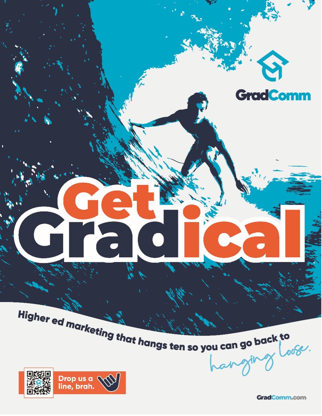 These are just fun! Designed by GradComm Art Director Chris Carroll, the subjects are literally jumping out of the images which gives them a youthful, energetic, and personable vibe. I’m a big proponent of images that feature smiling faces. They seem to welcome you in. I was thrilled when our client agreed with this direction.